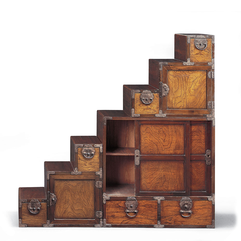 Stair-chest of drawers Stair-chest of drawers (c.1900), Unknown (Japan) Object name: Stair-chest of drawers Designer: Unknown (Japan) Object type: Drawers, Storage Date: c.1900 Material: Wood, sheet metal Dimensions: 154,5 x 156 x 47 cm Manufacturer: Unknown Guillermo Gil2019-03-21T16:12:23+01:00