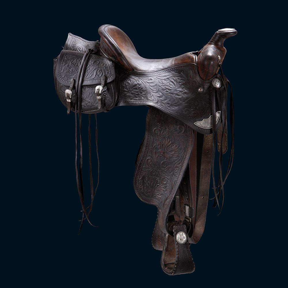 Western saddle Western saddle (1930), Unknown (USA) Object name: Western saddle Designer: Unknown (USA) Object type: Saddles, Seating Date: 1930 Material: Leather, brass, silver Dimensions: 42 x 73 x 66 cm Manufacturer: Unknown Guillermo Gil2019-03-25T14:55:09+01:00