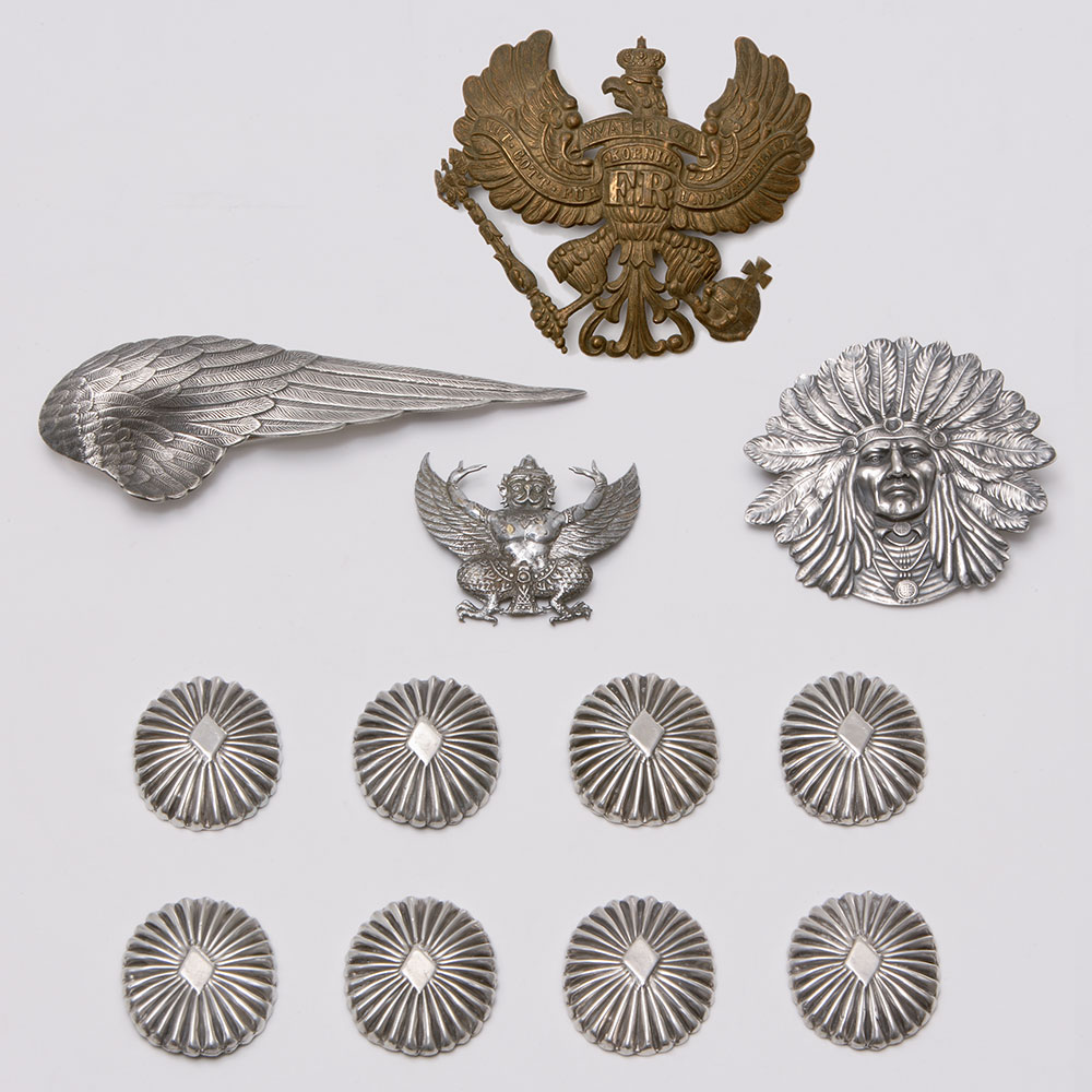 Ornaments for belt or bridle (c.1900; c.1930; c.1960; c.1930; Mid-20th Century), Unknown (Prussia); Unknown (USA); Unknown (Thailand); Unknown (USA); Unknown (Mexico)