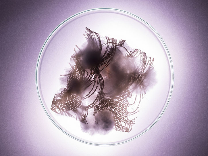 Les recherches que mènent actuellement Aléa explorent un processus unique de myco-fabrication bio-inclusive qui utilise, pour cultiver des créations dans un sol sauvage, le mycélium, le système racinaire des champignons, et des substrats de déchets locaux. L’obtention du prix de la résidence Boisbuchet 2021, leur a permis d’installer leur laboratoire dans la nature afin de tester leurs procédés à taille réelle. Là, elles ont pu planter, cultiver et récolter la première chaise souterraine issue de la myco-fabrication. Ce procédé permet de contourner la stérilisation à forte intensité énergétique et les moules en plastique, et d’examiner le potentiel des capacités régénératrices des mycéliums afin d’assainir les sols in situ et contribuer à nourrir la biodiversité. Leurs recherches actuelles sont soutenues par FAIRE Paris et le Pavillon de l’Arsenal.