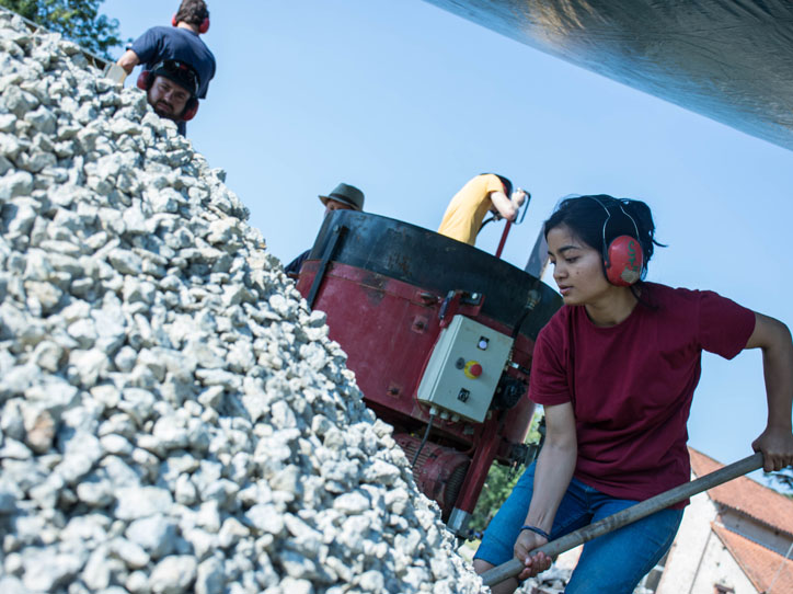 This workshop offers the unique opportunity to build a rammed earth fire-place for Boisbuchet.
