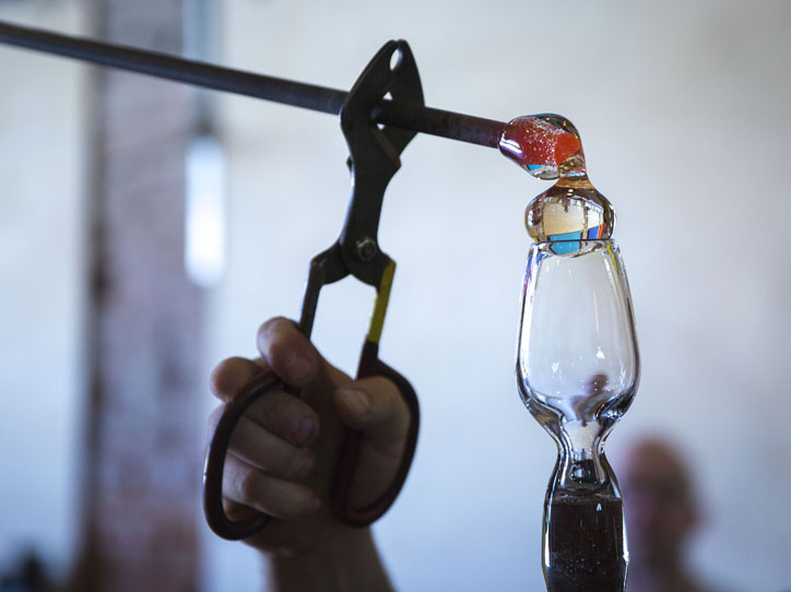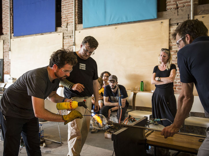 Candy Glass Shop at Boisbuchet is presented with the support and expertise of the GlassLab program from the Corning Museum of Glass (New York). GlassLab is a fully containerized mobile glassmaking studio featuring high-efficiency equipment, allowing unprecedented access to the creative possibilities of molten glass.