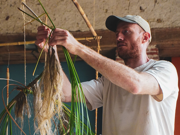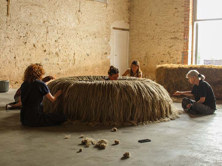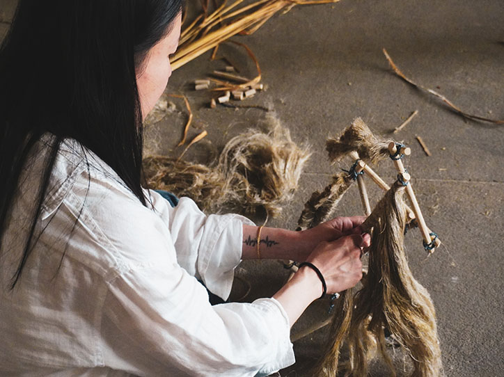 S’inspirant de cette approche, les participants à Boisbuchet s’engageront dans un processus expérimental en travaillant avec des fibres végétales régionales comme le chanvre, le lin ou l’ortie. Ils exploreront le cycle complet de transformation des fibres – du traitement des matières premières à l’expérimentation de techniques telles que le tissage, la torsion ou le nouage – avec pour objectif la réalisation d’objets fonctionnels. L’accent sera mis sur la compréhension du comportement des fibres : comment elles s’étirent, se contractent, se rigidifient ou s’assouplissent, en laissant la matière guider le processus créatif. Les participants découvriront comment les techniques de tissage traditionnelles peuvent être réinterprétées dans un contexte contemporain, comment différentes fibres peuvent être combinées pour renforcer la solidité et la texture, et comment des structures peuvent être créées à partir de nœuds simples ou d’éléments entrelacés – sans recours à des colles ni fixations.