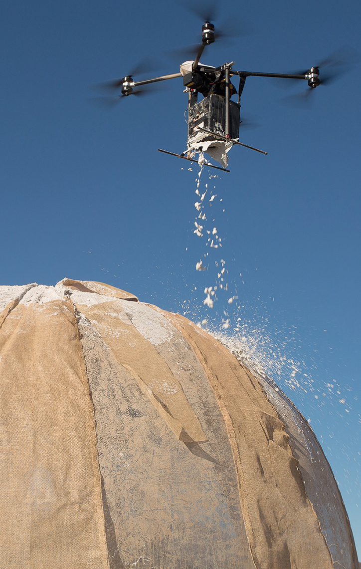 A double remote control of the large drones will allow participants to control speed and pressure of the clay's application - amongst other parameters as well. Timing (including the time needed for drying) will be crucial in our success and influence the drone’s choreography.