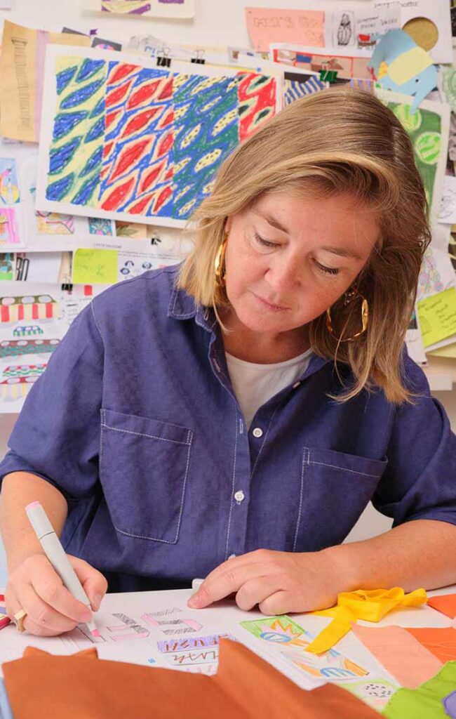 Maria est une designer textile d’origine danoise dont le travail se concentre sur le langage graphique du textile. Après quinze années dans l’industrie de la mode, où elle a travaillé comme designer de motifs textiles pour des marques telles que Giorgio Armani, Replay et Arthur Arbesser, elle a ouvert son propre studio en 2019. Elle y propose des services de conseil pour les secteurs de la mode et de l’intérieur, avec un accent particulier sur le graphisme textile. Parallèlement à cette activité, elle développe une pratique artistique personnelle à travers la peinture et le textile, qui a notamment donné lieu à son exposition personnelle PLURI à Milan en 2024. Maria est également professeure à la NABA Milano et au Politecnico di Milano, où elle dirige des cours et des workshops consacrés au design textile et à l’expression graphique.