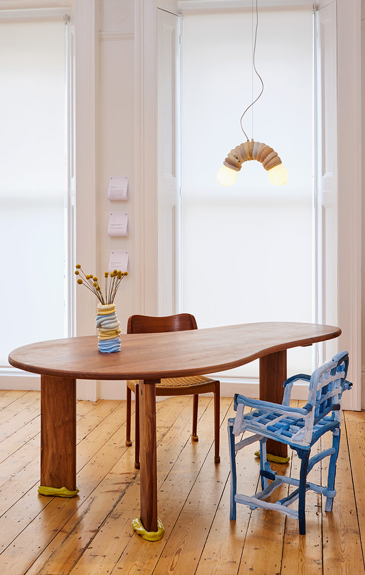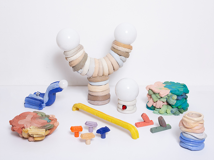 James Shaw est un designer londonien qui fabrique des objets et des meubles. Son travail vise à mettre en valeur la beauté inhérente à divers matériaux, en associant ou en opposant souvent les qualités tactiles et artisanales aux qualités structurées et systématisées. Il s’intéresse souvent aux ressources qui nous entourent, remettant en question les notions de “déchets” et de “valeur”. Il est probablement plus connu pour son travail avec des plastiques recyclés et son pistolet d’extrusion qu’il a lui-même construit et qui produit des formes blobby, gloopy et baroques, créant des objets d’une beauté inattendue à partir d’un matériau problématique. Les œuvres de Shaw font partie des collections permanentes du MoMA, du V&A, du MAK de Vienne, du Musée d’art de Montréal, du Design Museum de Gand et du Museum of London, entre autres.