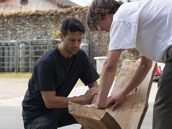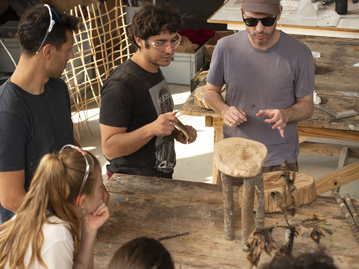 Ce workshop s’appuie sur un projet de recherche mené depuis plus de dix ans par Jorge Penadés, qui explore les impacts de l’industrie de l’huile d’olive en Espagne, premier producteur mondial. Son enquête met en lumière les conséquences de la mécanisation extrême, notamment le passage de la récolte traditionnelle à des méthodes superintensives, qui ont transformé les écosystèmes et redéfini les hiérarchies matérielles. Au-delà du cas spécifique du bois d’olivier, l’atelier propose aux participant·e·s de repenser le potentiel des éléments de bois rejetés, à partir du contexte naturel de Boisbuchet.