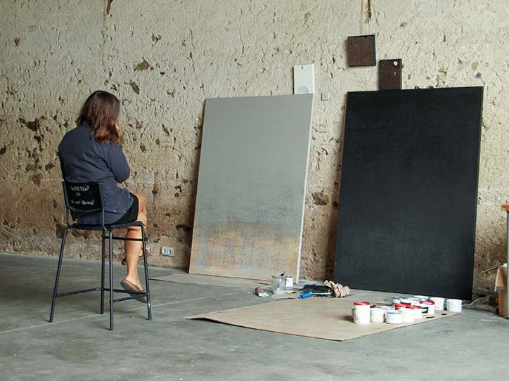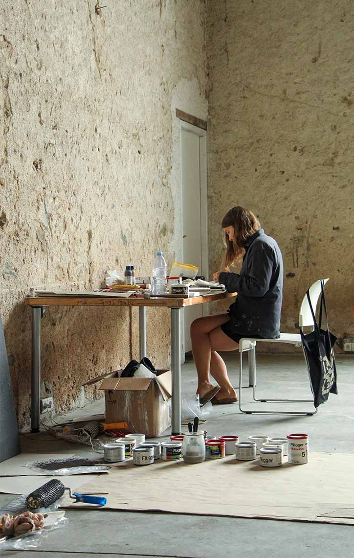 During the residency, she worked on the painting project Day and Night and Everything in Between. In her art, she searches for what lies in between : between people, between languages, between nature and architecture, between line and stain, between sky and earth and her stay at Domaine de Boisbuchet was a wonderful opportunity to explore this.