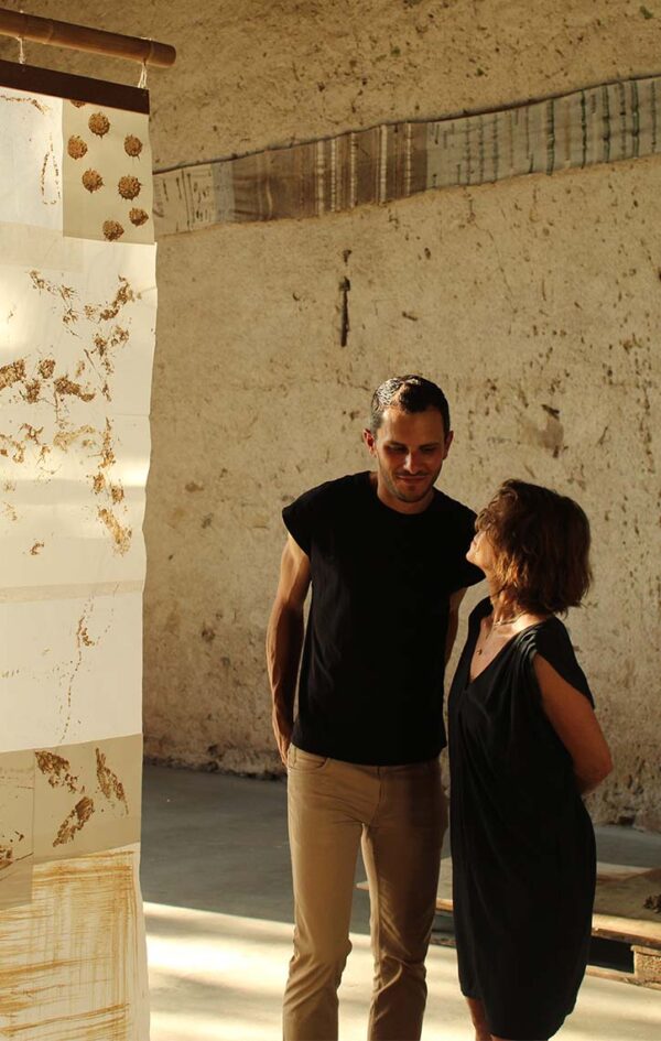 The starting point for this artistic research was the natural environment of the Domaine de Boisbuchet: a living landscape that offers both inspiration and a process open to experimentation with the materials. During a three-week residency, artists Diego Lara (Madrid, 1993) and Maggie Silverman (Berkeley, California, 1962) developed a collaborative work focused on the exploration of the territory, guided by active listening offered by the place. Diego and Maggie met during their residency. Though they came from different generations and places they found a natural rhythm of collaboration.