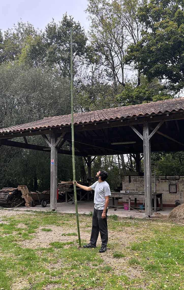 During his artist residency, he developed a project exploring the concept of the tea house, a space deeply rooted in Japanese tradition as a place of contemplation, reflection, and harmony. The Japanese tea house represents a setting where architecture and nature blend fluidly, creating an atmosphere of tranquility that allows one to connect with oneself and with the surrounding world in a profound and harmonious way.