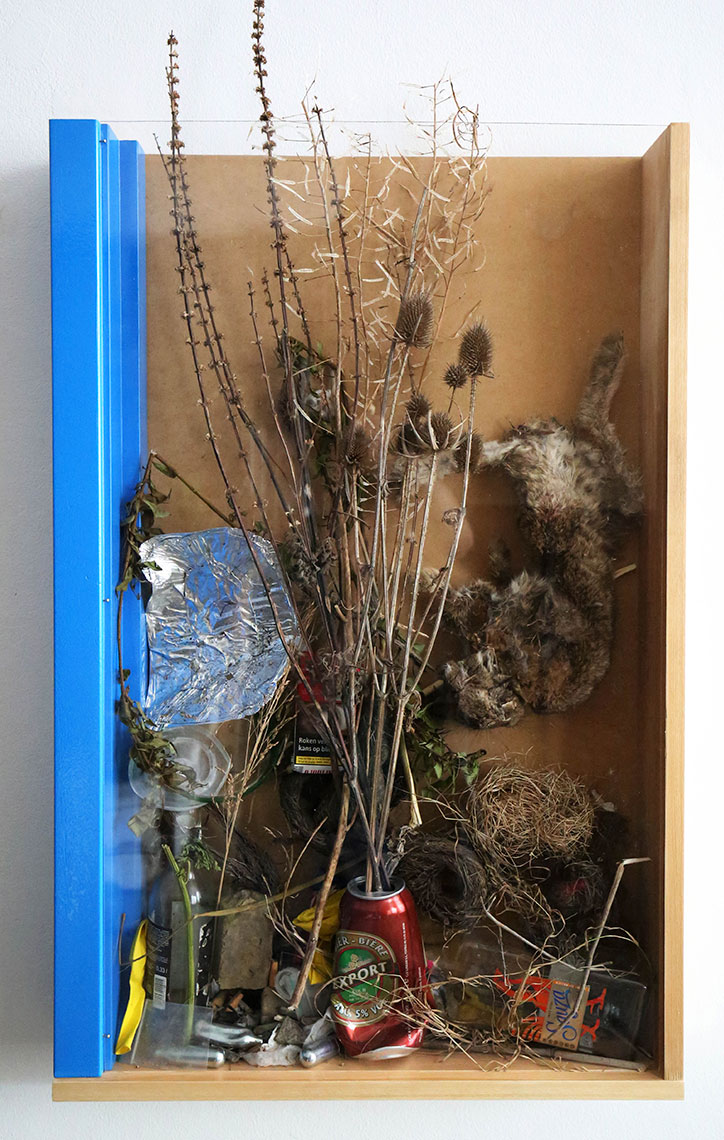 Frank Bruggeman is a visual artist and designer from Rotterdam. In his work he often uses plant materials, sometimes combined with manmade objects painted in a vibrant blue colour. An underlying theme in his work is the revaluation of materials that are regarded as worthless and unusable. His work varies from floral installations and medium sized gardens to large scale interventions in urban green spaces. Among his clients are The New Institute (Rotterdam), fashion designers Viktor & Rolf and several magazines.