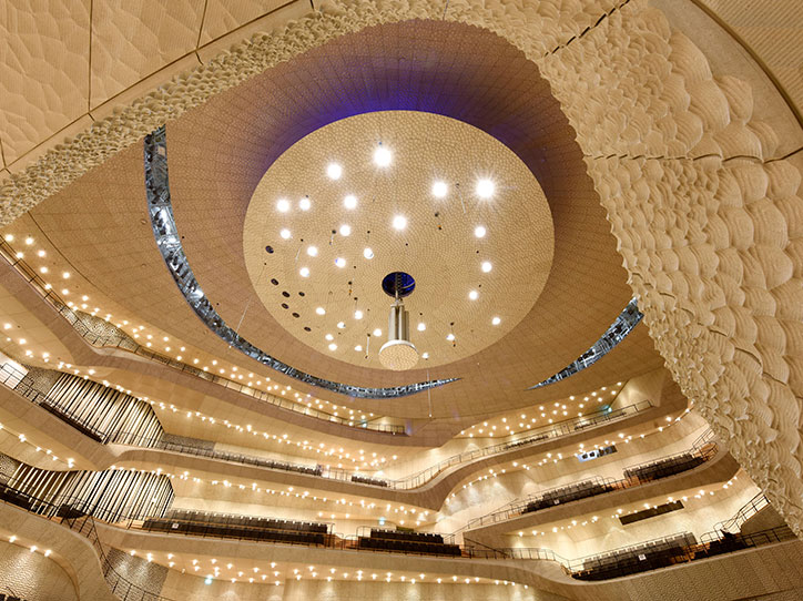 Experience gained in over 1000 worldwide projects is applied during the design process in finding technical solutions, particularly emphasized projects are the new Mercedes- Benz Museum Stuttgart, Masterplan of Rotterdam, Rotterdam Centraal, Nürnberg Messe, Town Hall Hamburg, Galerie De L` Evolution Paris, the international Airport Pudong T2, Shanghai, Elbphilharmonie Hamburg, Royal Academy of Music London.