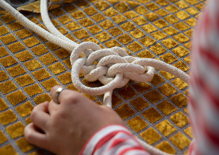 As I explain how a line’s journey creates strength and meaning in each knot, I will also detail my own creative journey — starting with the yearlong project carried out in 2016 to learn a new knot each day into an overview of my current body of work.