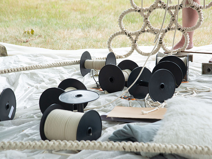 During the first few days of the workshop, participants will learn several knotting techniques, then we will build upon the skills we’ve learned to create beautiful and functional objects, culminating in a group-created large knot installation which will live on the Boisbuchet grounds for years to come. I will be happy to advise those who want to create their own wall hangings or objects.