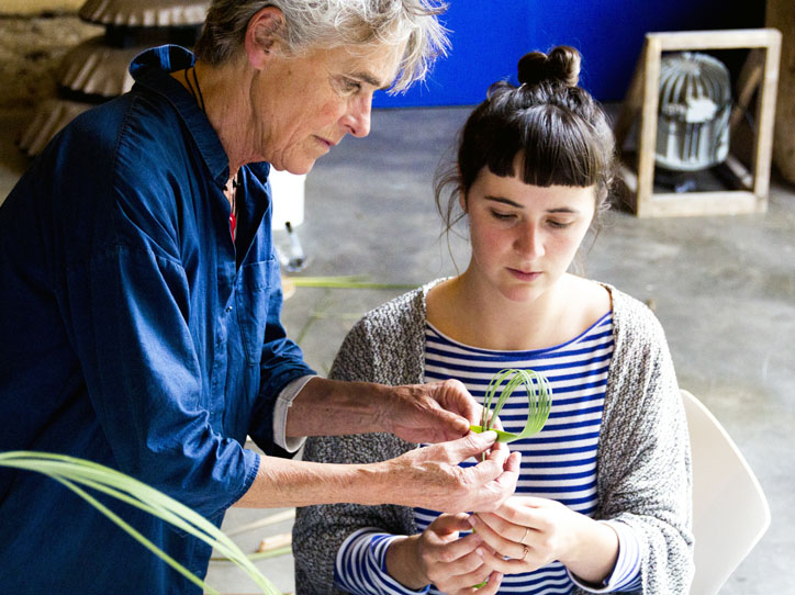 Maria Blaisse (born 1944) studied textile design at Gerrit Rietveld Academy. Since 1985 she works as an independent designer and international visiting professor, sharing her way of working in projects on “material, form and movement”: “My work is based on a continual investigation into the possibilities of a material. This process produces many possible applications of a material. Essential factors are simplicity, clarity, beauty, sustainability and an optimal use of the material and its qualities. Ultimately: to incite the flow of continuous creation, no waste, no loss of energy alert and alive.” Maria Blaisse taught textile design for 17 years at the Gerrit Rietveld Academy in Amsterdam. For many years she has been at the forefront of research and education in craftsmanship in textiles and flexible design. She created a language in forms that can be universally understood – an Esperanto of rubber, gauze, felt, leather, glass, and bamboo – all based on one specific form.