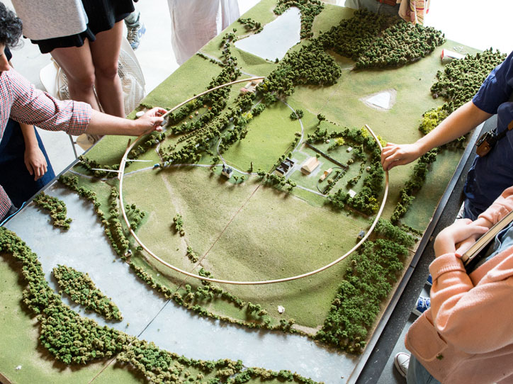 There is Boisbuchet’s beautiful estate amidst the countryside with architectural pavilions and follies scattered around… But what is the connection of those buildings to each other and what is their relation with the surrounding? What is the relation between inside and outside the estate, the pavilions… the Domaine…?
