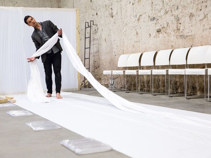 Bokaer has performed at the Guggenheim Museum, P.S.1 MoMA, and The New Museum in New York City. He founded Chez Bushwick in 2002, and co-founded CPR – Center for Performance Research with John Jasperse in 2008. He has collaborated with artists including Lynda Benglis, Anne Carson, Merce Cunningham, Robert Gober, Anthony McCall, Tino Sehgal, Lee Ufan (Guggenheim Retrospective 2011), and Robert Wilson. As choreographer for Robert Wilson, he has completed 6 operas including Faust (Polish National Opera), Aïda (Teatro dell’Opera di Roma), and On The Beach (Baryshnikov Arts Center). Bokaer has collaborated with Daniel Arsham on nine full-length works since 2007.