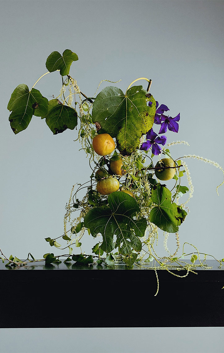 Wagner Kreusch’s commitment to a more sustainable practice within floristry is deeply linked to his understanding of the medium as both an art form as well as an expression of culture. Kreusch studied at the renowned Sogetsu School of Ikebana under the supervision of the late Ikebana master and former director of Sogetsu London, Mr Shigeo Suga. Kreusch is a certified Sogetsu teacher simultaneously practicing and teaching the art form today.