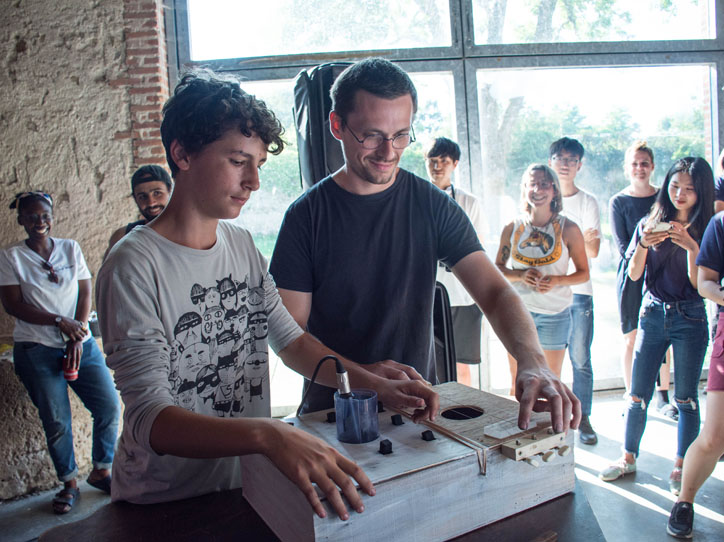 On our final day, everyone demonstrates their creations in an impromptu concert for the Boisbuchet team.