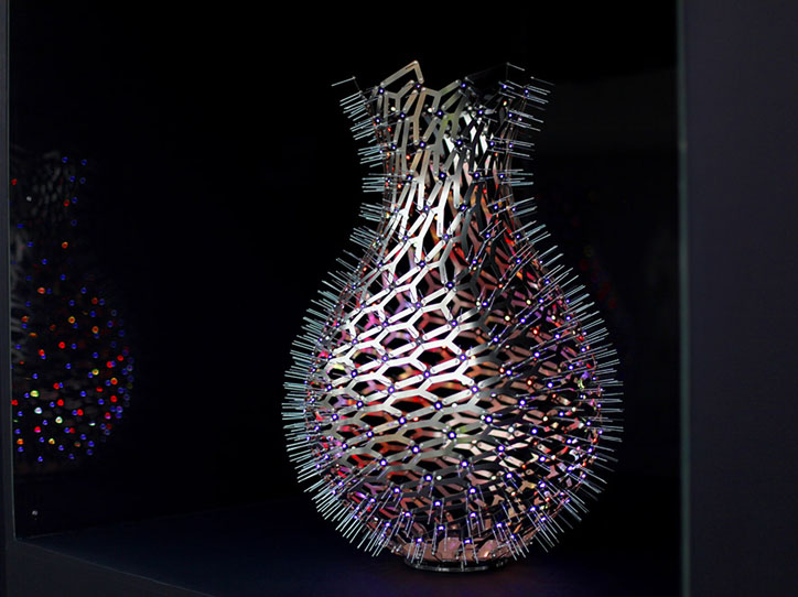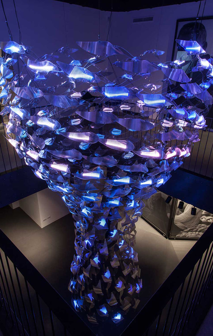 Moritz founded his own Studio in 2004, enabling him to work on large-scale, independent projects. The Studio was built on a philosophy of playful experimentation by forging links between technology, art, fashion and design. This approach has resulted in a number of bespoke installations for Audi, Bombay Sapphire and Microsoft, as well as a series of eccentric LED-embedded hats designed in collaboration with Philip Treacy. The studio has also made its mark in the music industry by creating high-tech, lightstudded costumes for the likes of U2, Rihanna, and the London Olympics Handover Ceremony performers.
