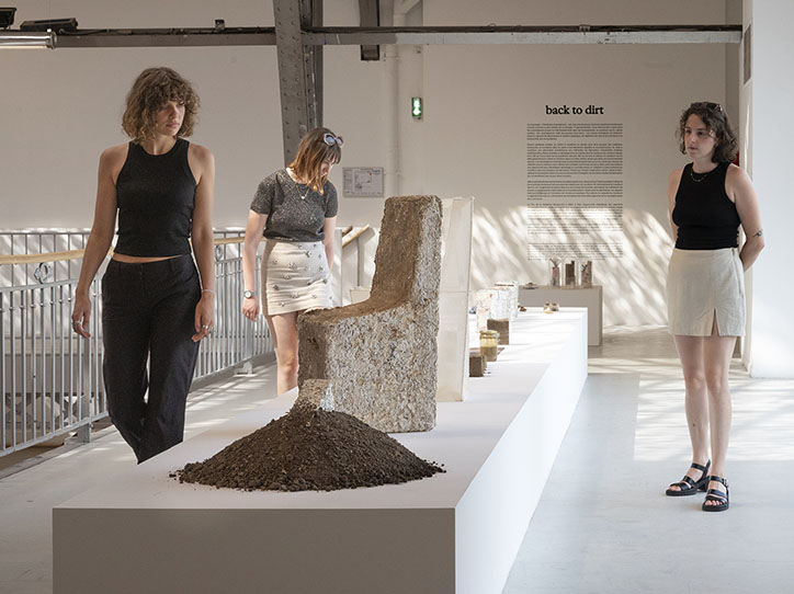 Their ongoing research project ‘Back to Dirt’ explores a unique bio-inclusive myco-fabrication process that utilizes mycelium, the root system of fungi, and local waste substrates to grow objects in soil. Winning the 2021 Boisbuchet Residency Award allowed them to test their process at full scale, where they grew the first underground myco-fabricated chair. Their process bypasses the need for sterilization and plastic moulds, examining the potential of mycelia’s regenerative capacities. Their research is supported by FAIRE Paris and has been exhibited at Pavillon d’Arsenal, France Design Week, FRAC Orleans, Biennale Amour Vivant, among others.