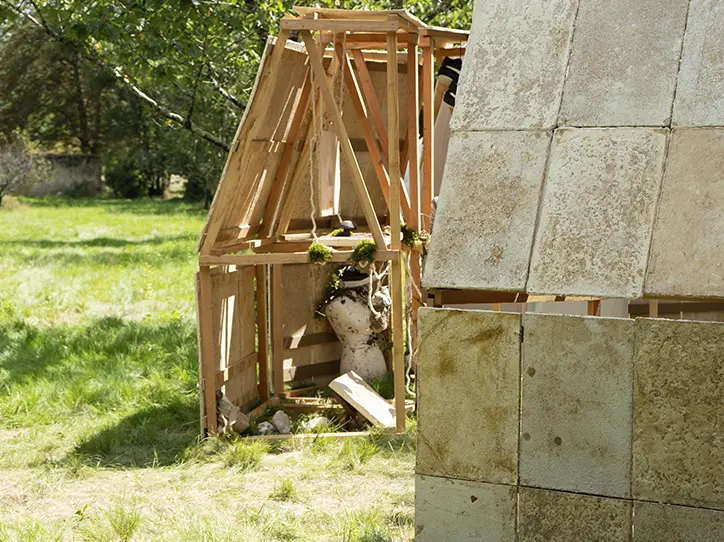 Their ongoing research project ‘Back to Dirt’ explores a unique bio-inclusive myco-fabrication process that utilizes mycelium, the root system of fungi, and local waste substrates to grow objects in soil. Winning the 2021 Boisbuchet Residency Award allowed them to test their process at full scale, where they grew the first underground myco-fabricated chair. Their process bypasses the need for sterilization and plastic moulds, examining the potential of mycelia’s regenerative capacities. Their research is supported by FAIRE Paris and has been exhibited at Pavillon d’Arsenal, France Design Week, FRAC Orleans, Biennale Amour Vivant, among others.