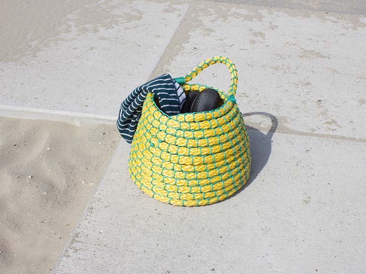 A dazzling quilt made of shirts, baskets of packaging straps, a hand woven QR-code, a flying raincoat – to name a few. But Rein often comes back to a few basics: weaving, coiling, knotting and making ready-mades. This particular way of working made Rein an early and proud member of the @_basketclub_